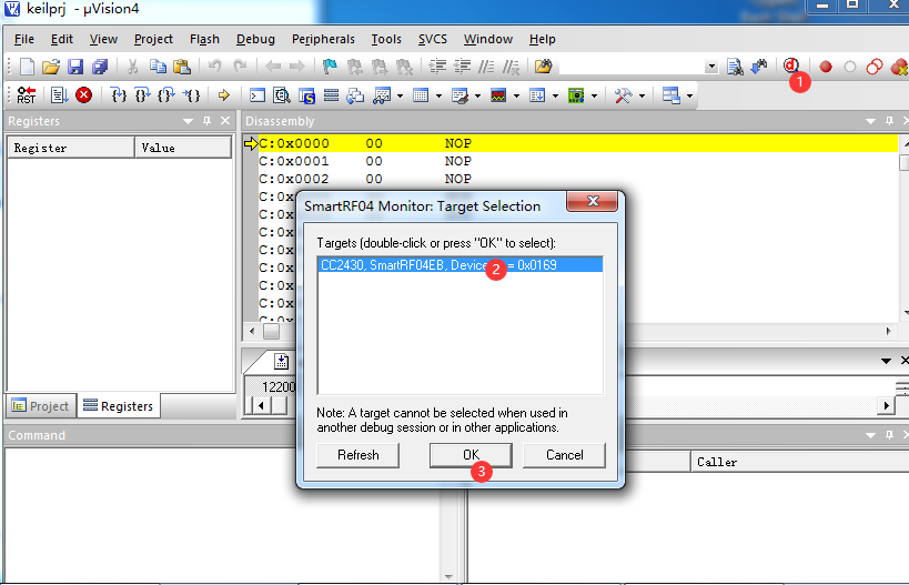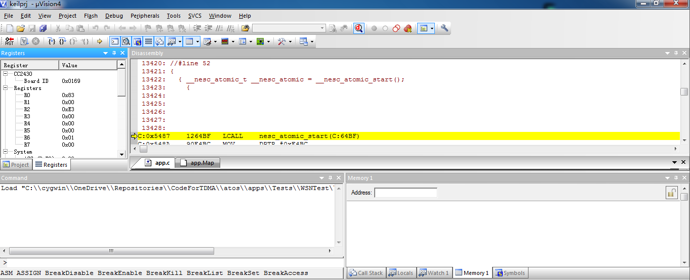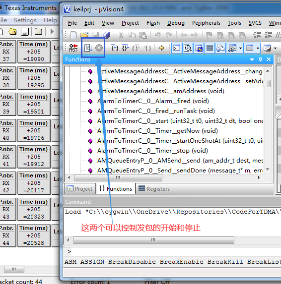 在到存放hex文件的目录下,找到keil的文件,打开可以调试 (单击debug按钮进行调试)