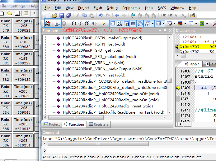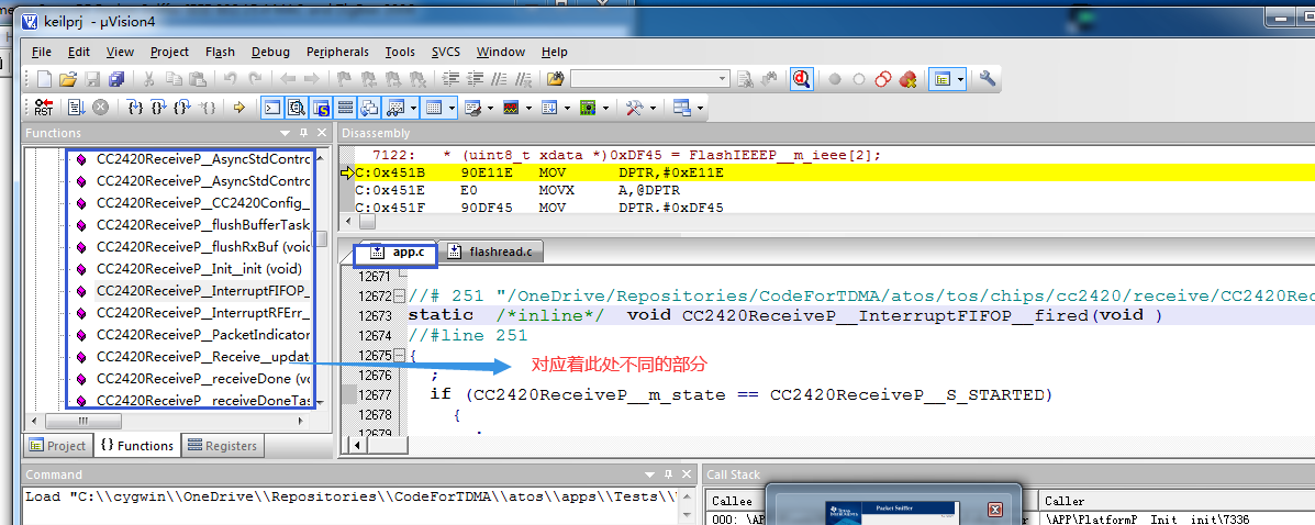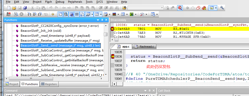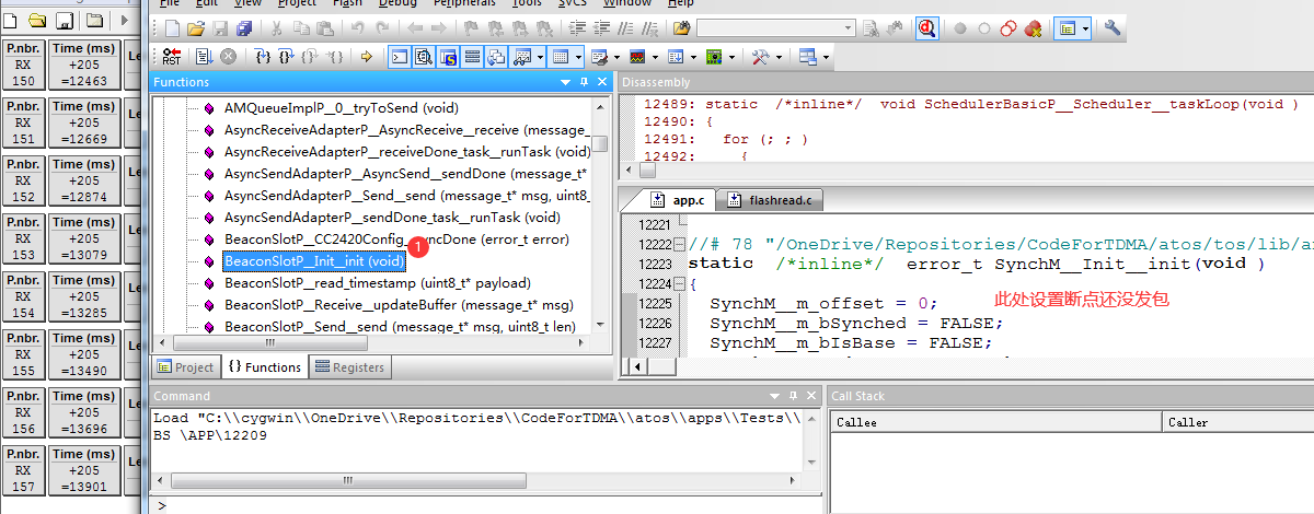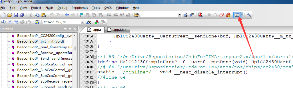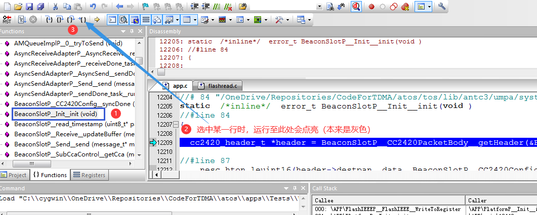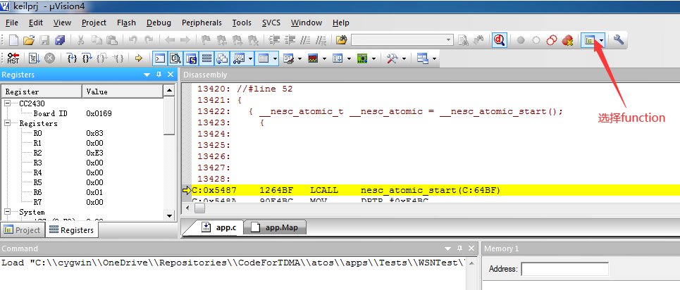 然后点function->app.c->找到想要的位置 左边的文件表示程序执行的顺序