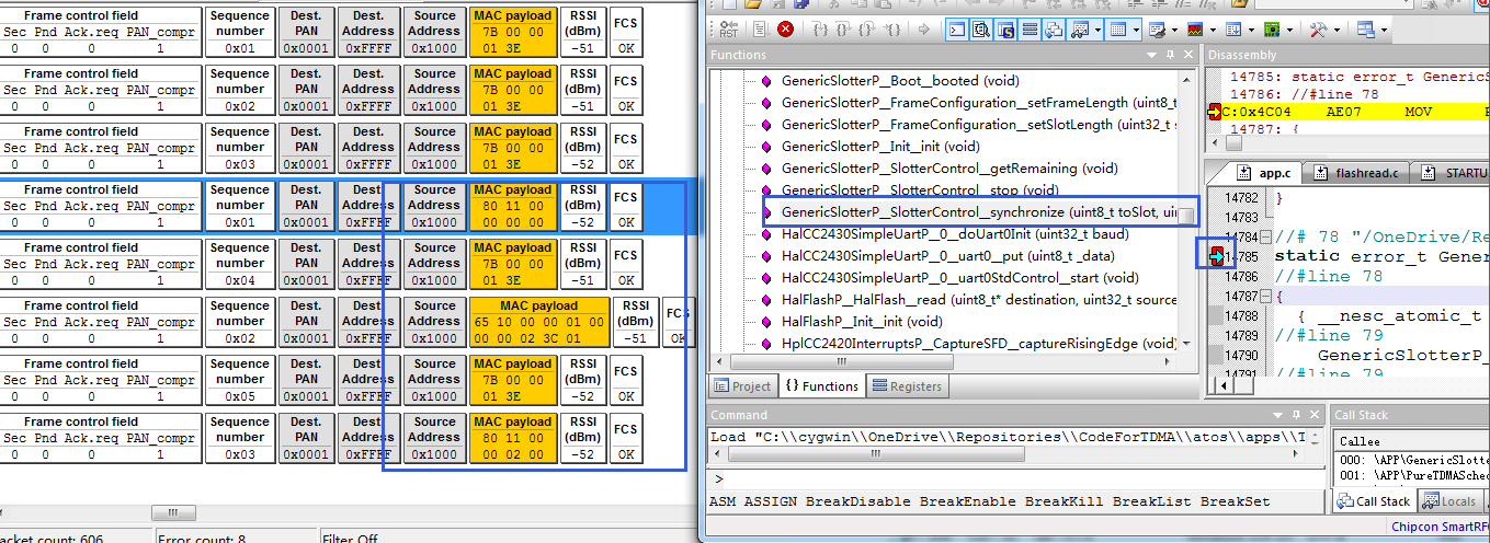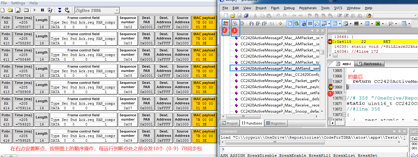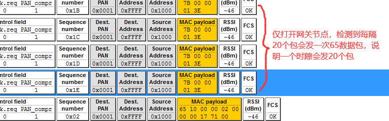 现在的调试是关于网关的,普通节点没有开启,6=如图显然65包是在断点之前完成
