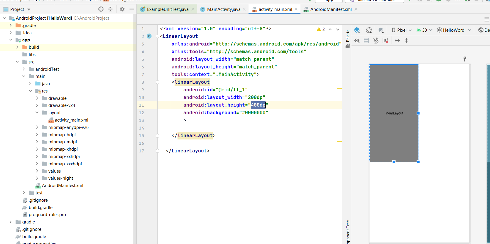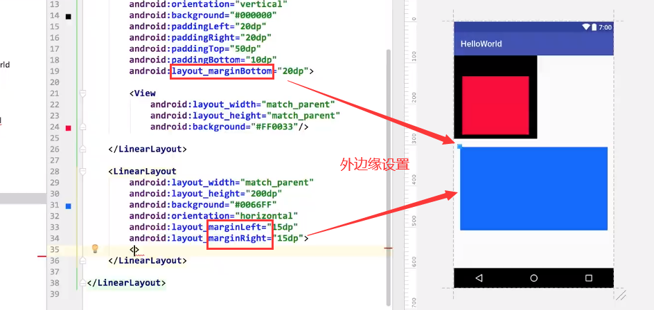 2-1-1 LinearLayout最常用的属性,id、宽度、长度、高度、背景、外边缘、内边缘、方向