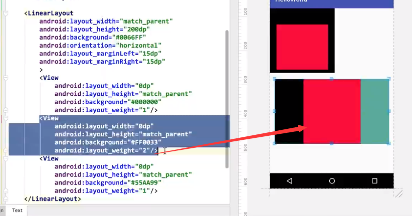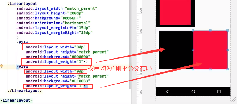 平分各占一半,weight:将父布局的剩余空间按weight权重分配