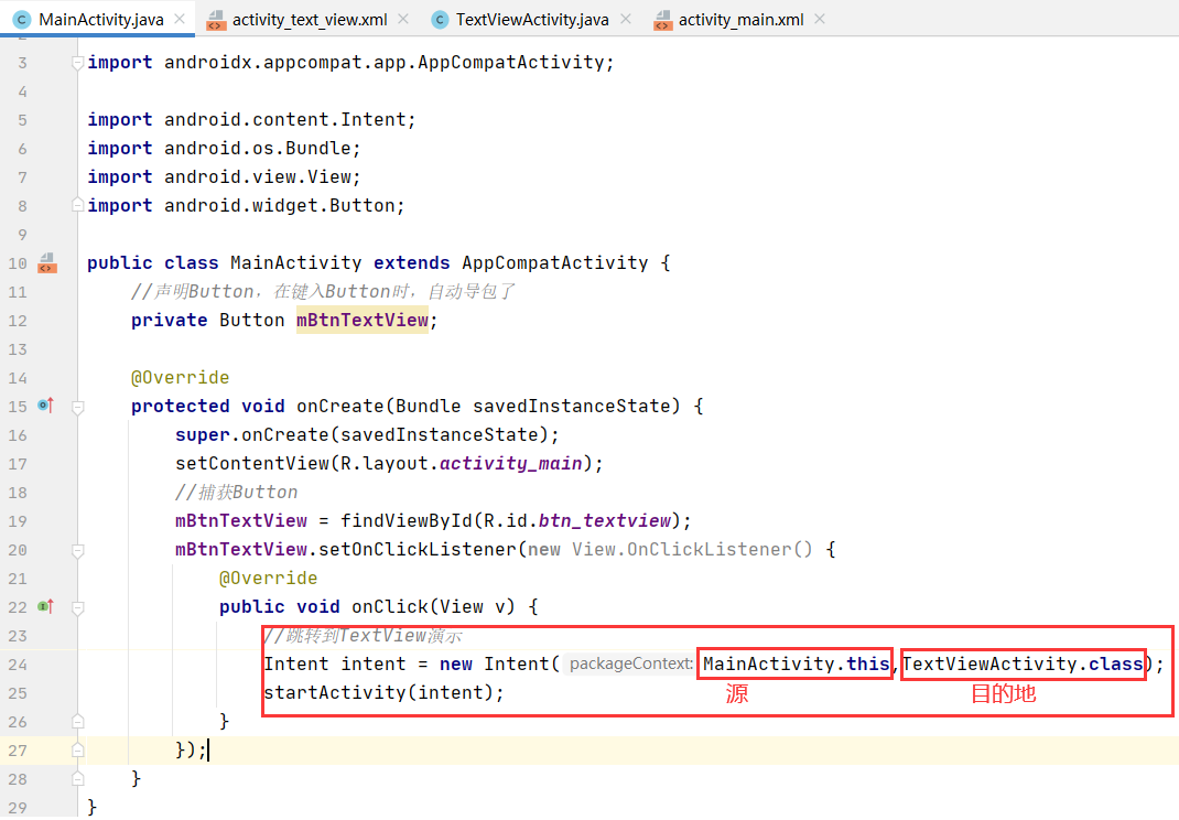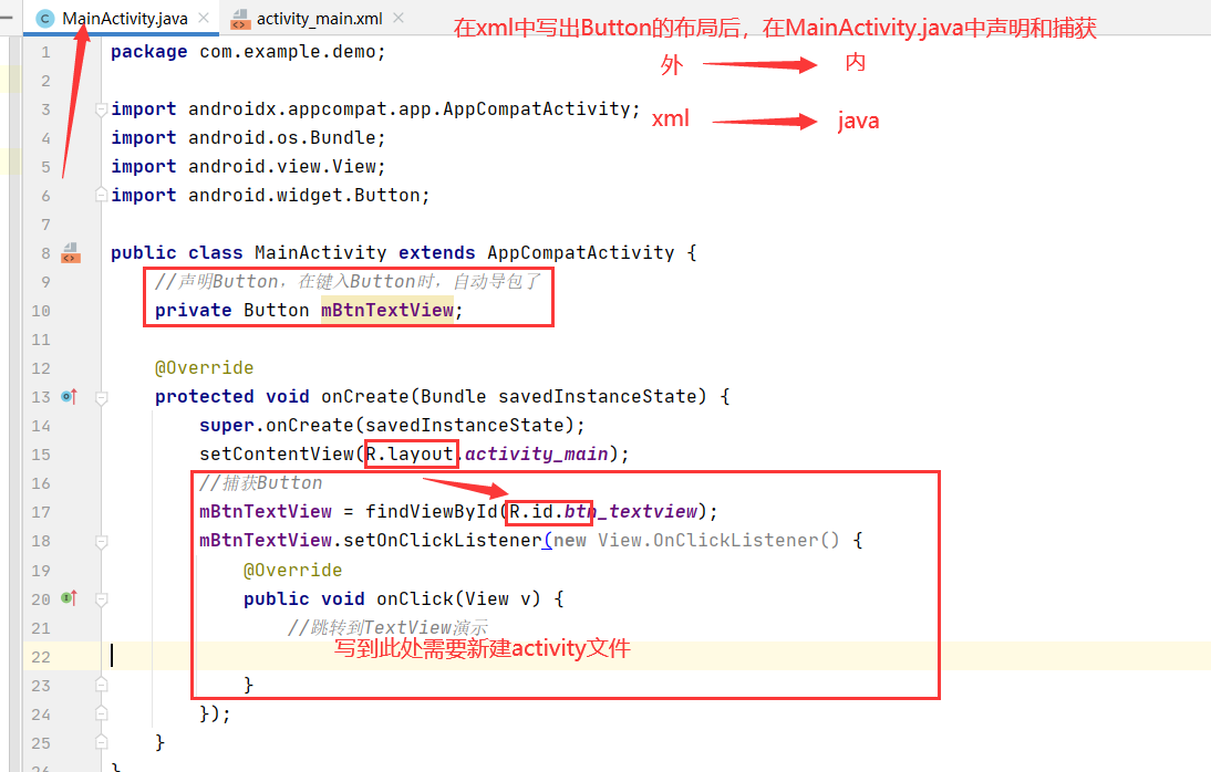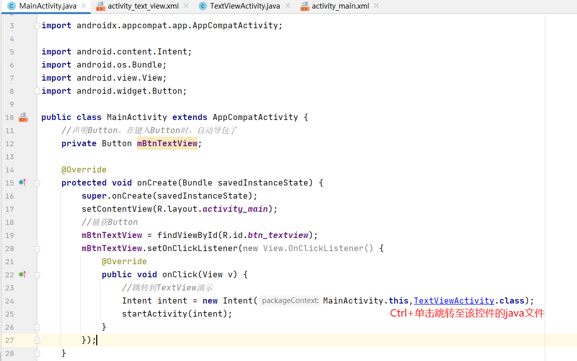 开始回到 mainactivity 写跳转语句