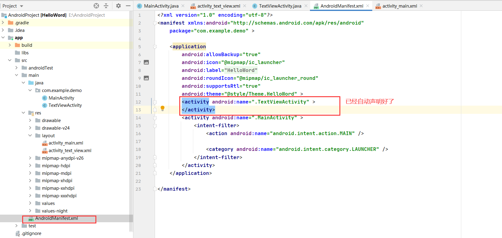 注意:每新增一个activity都需要在AndroidManifest.xml中注册
