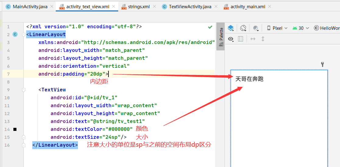 text,textcolor,textsize,sp 文字的大小和颜色