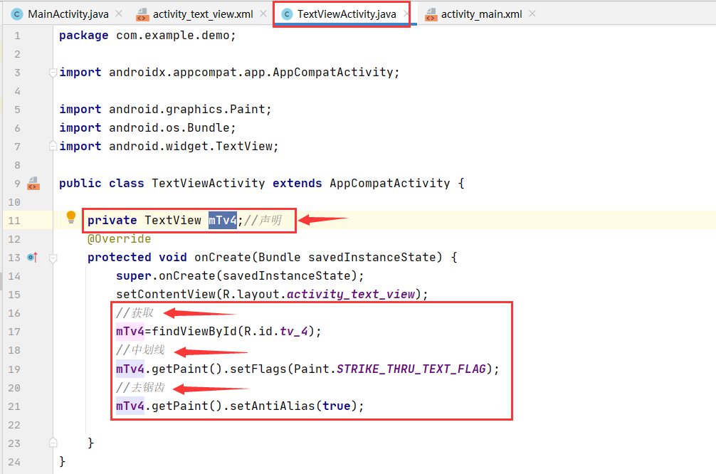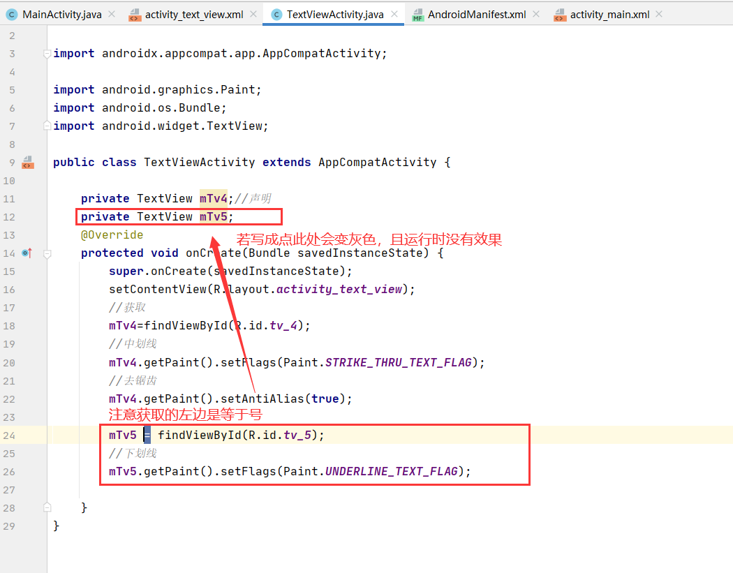 中划线,下划线(需要在java文件中去写,而不能在xml布局文件中去实现了)