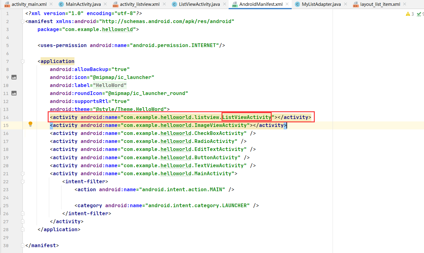 然后关键来了,新建一个Activity要在 AndroidManifest.xml 中声明