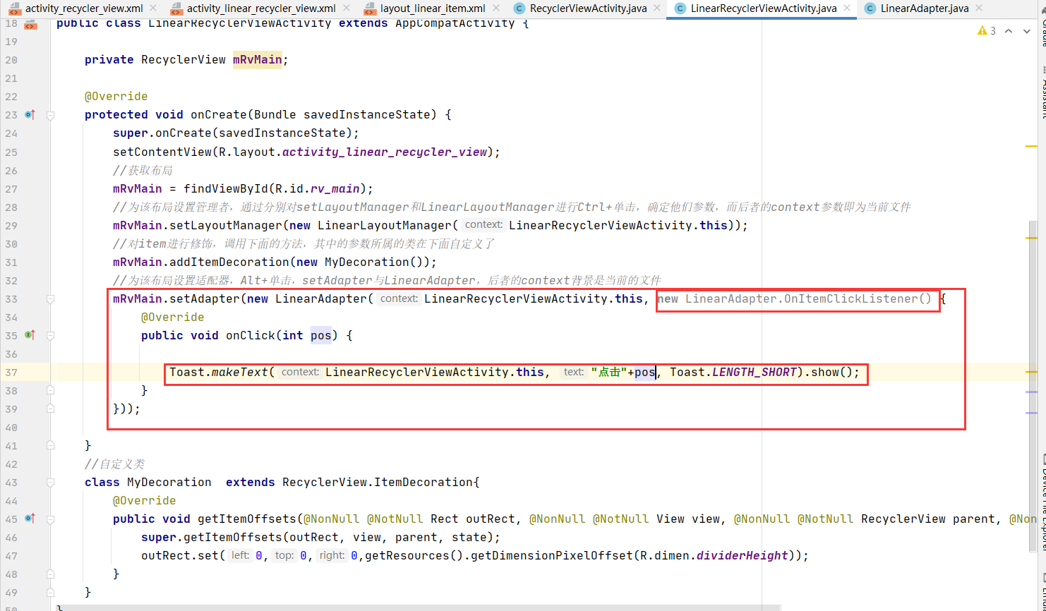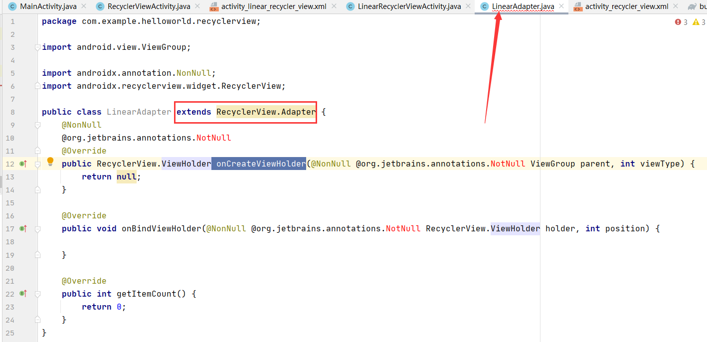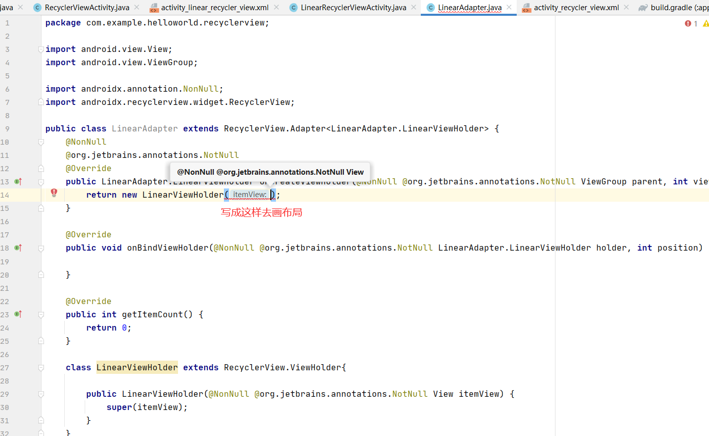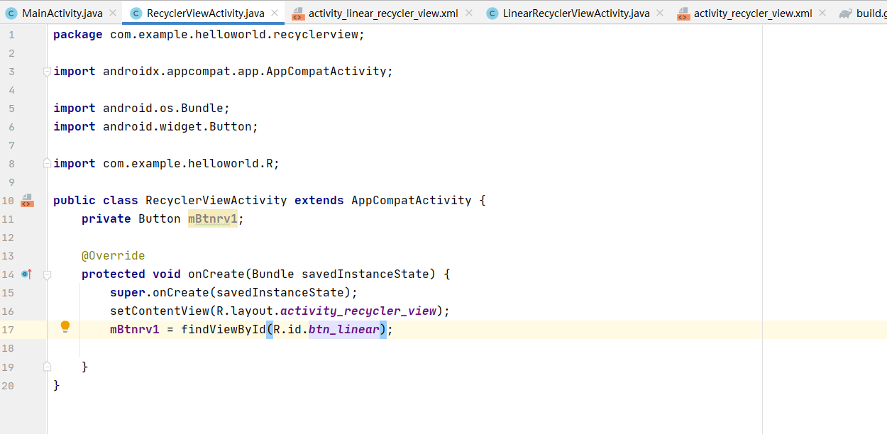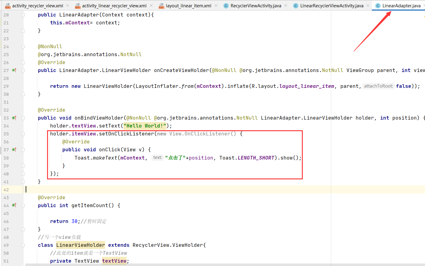 然后回到 LinearRecyclerViewActivity 继续编辑