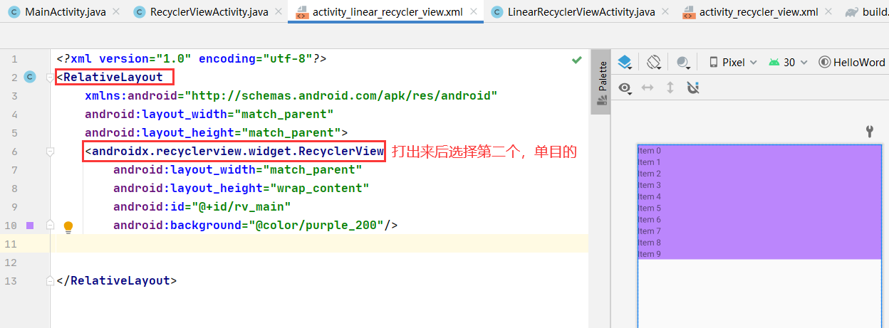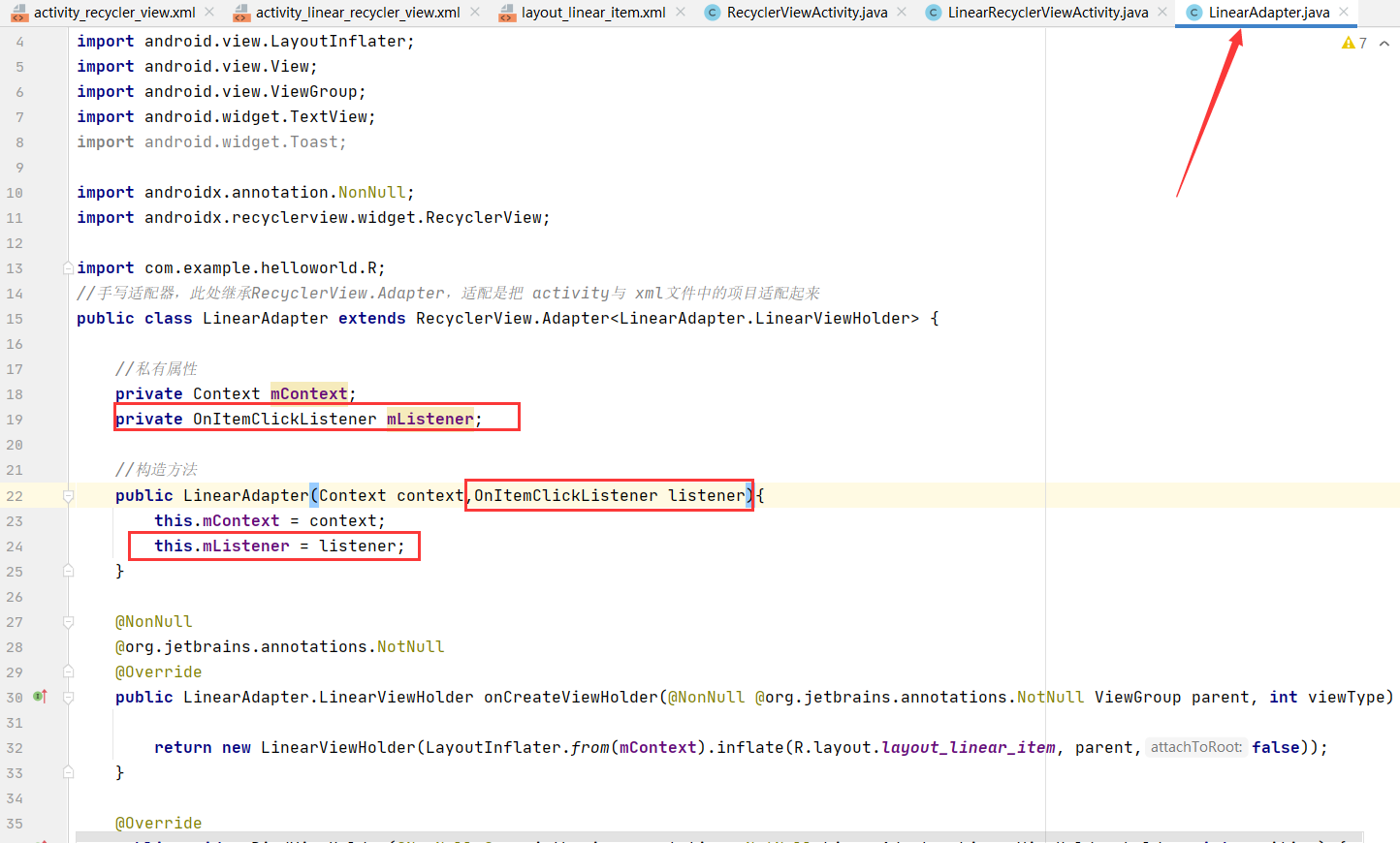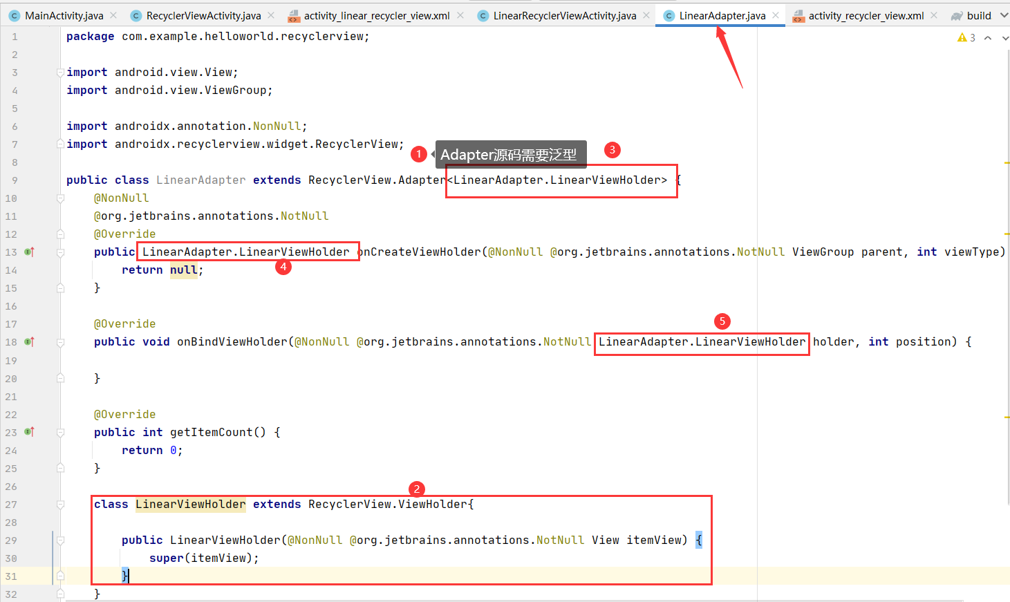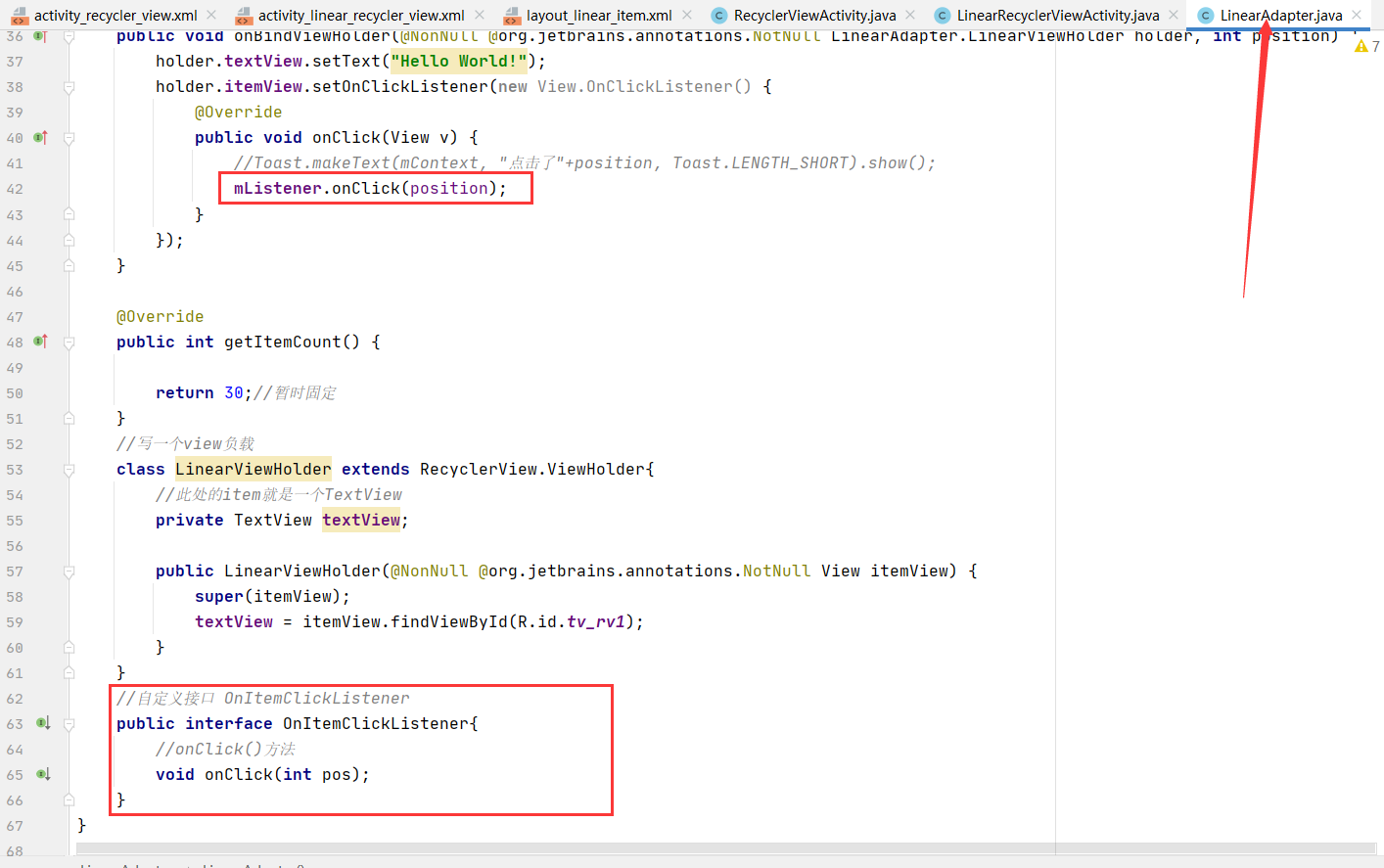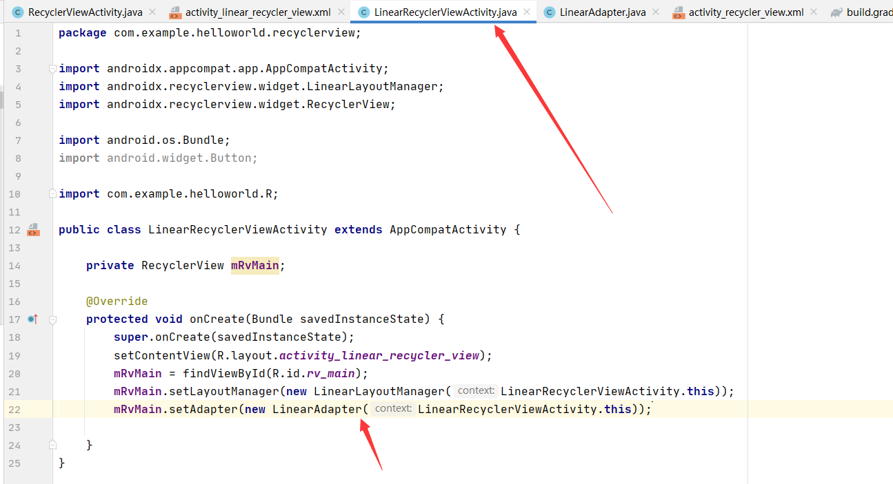 然后回到 LinearRecyclerViewActivity 继续编辑