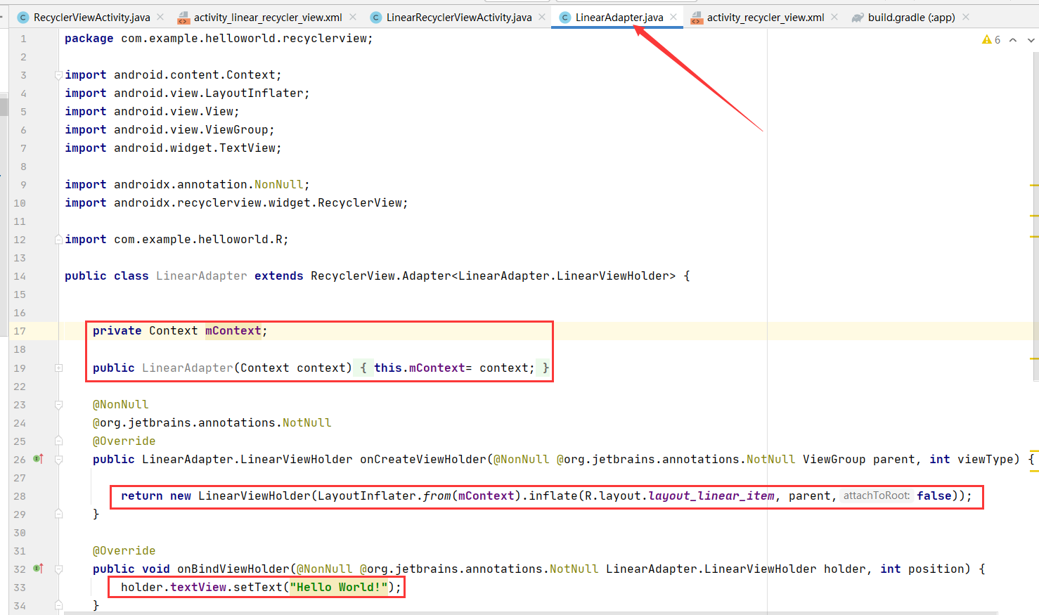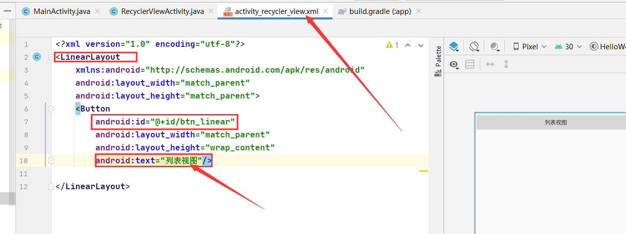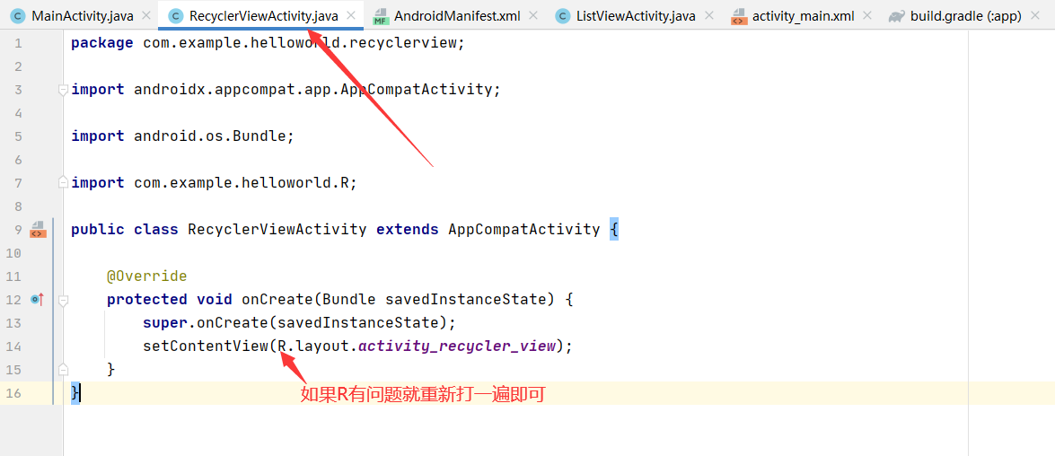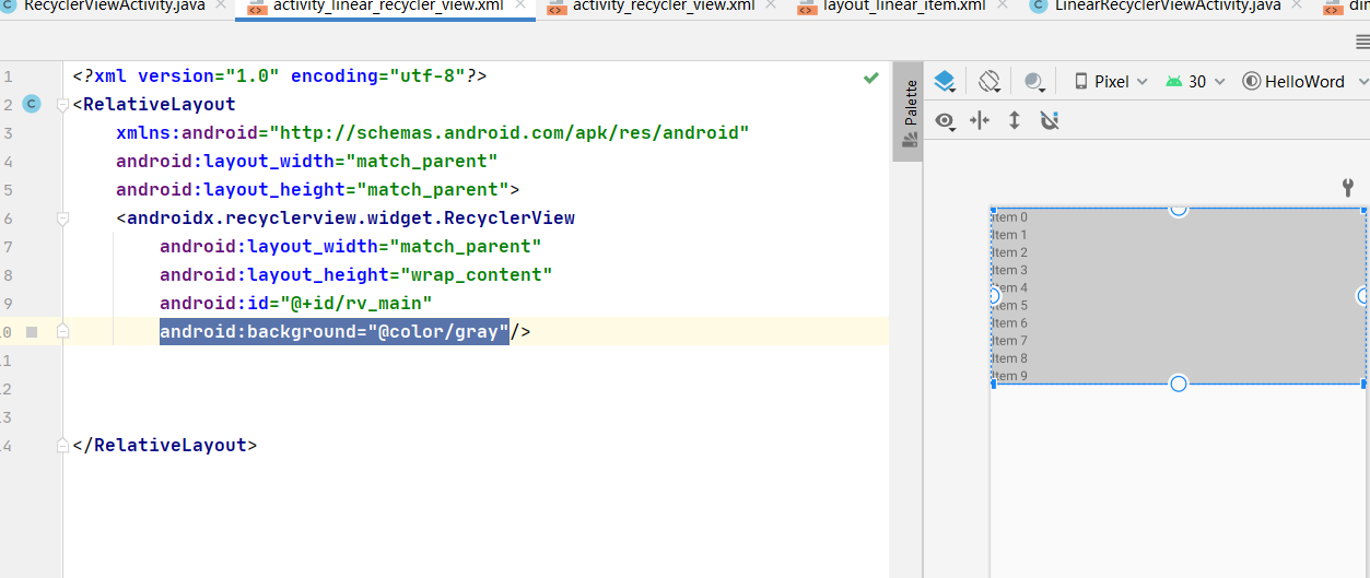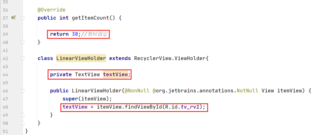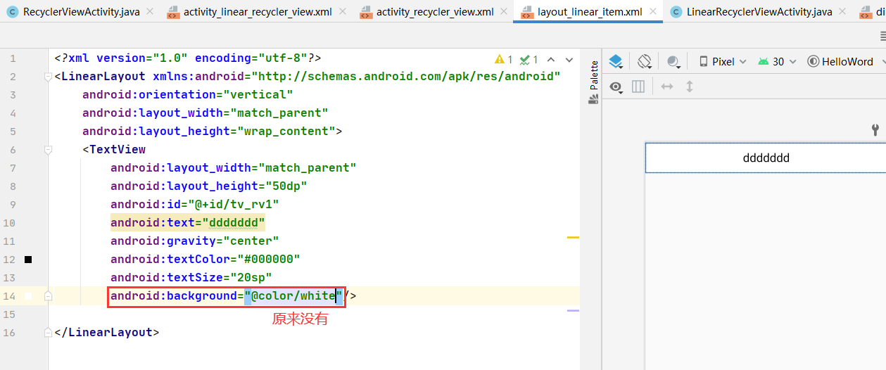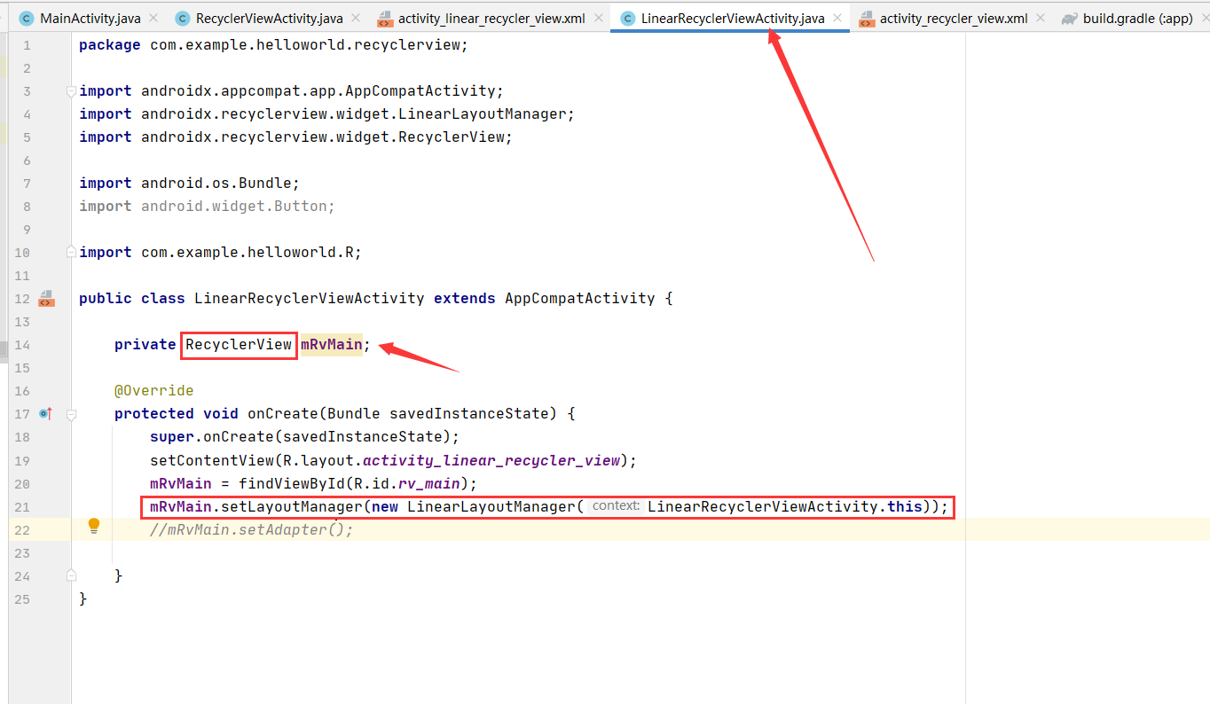 然后回到 LinearRecyclerViewActivity 继续编辑