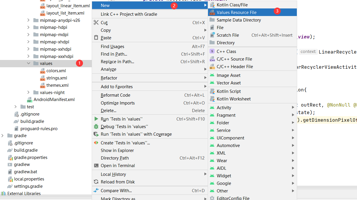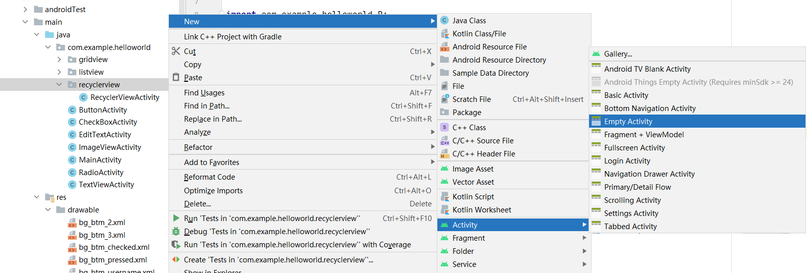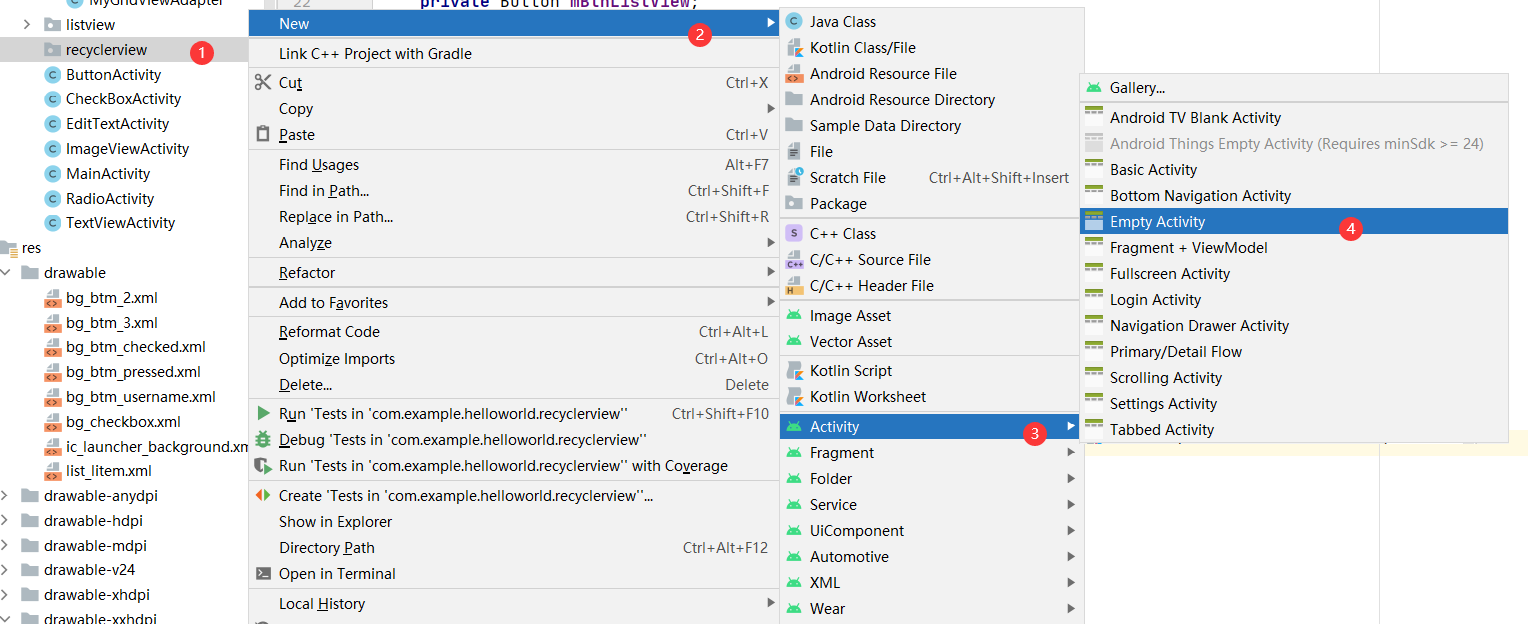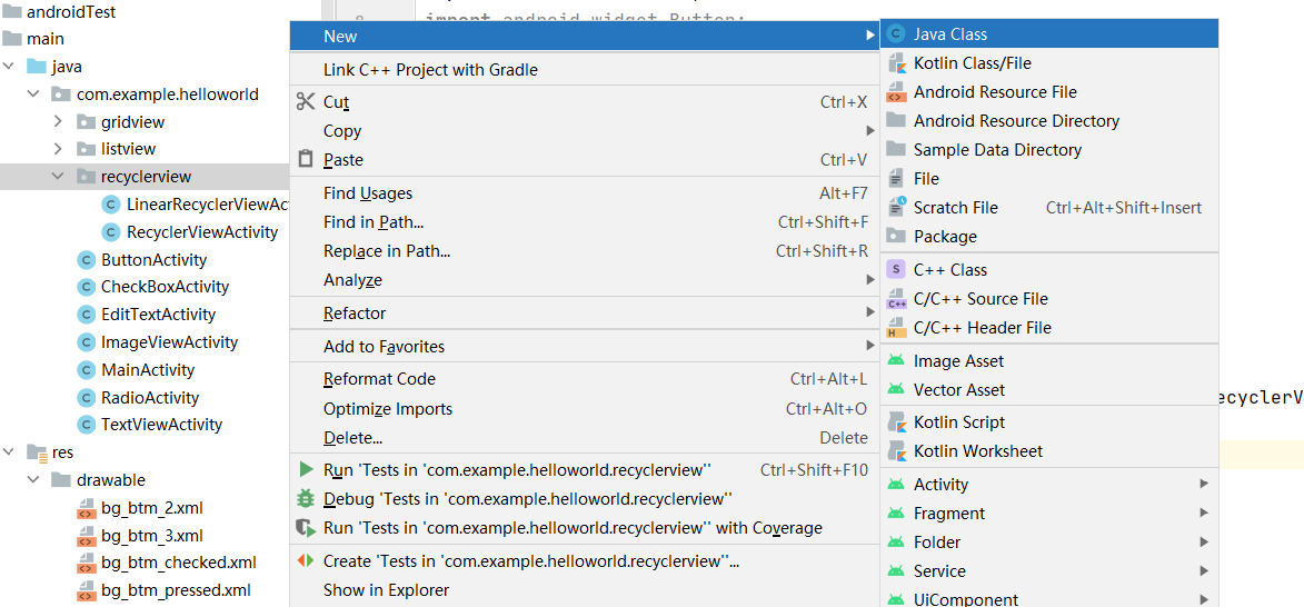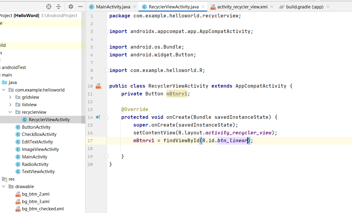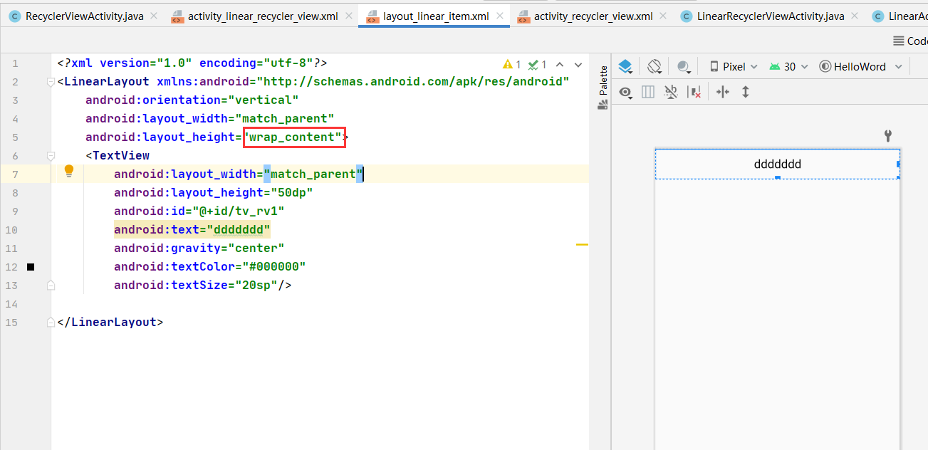 然后回到 LinearRecyclerViewActivity 继续编辑
