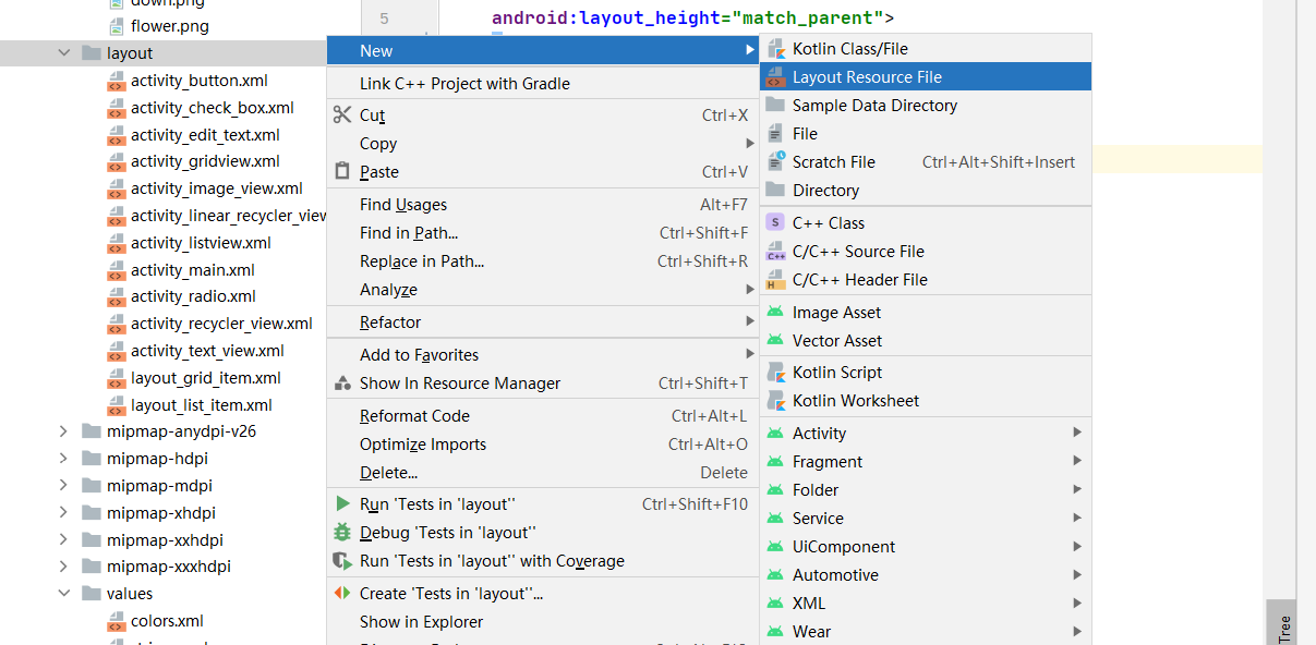 之前的两个布局文件一个是,列表视图,一个是列表视图点进去之后的,RecyclerLayout布局