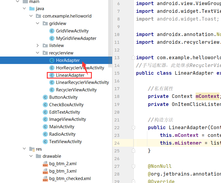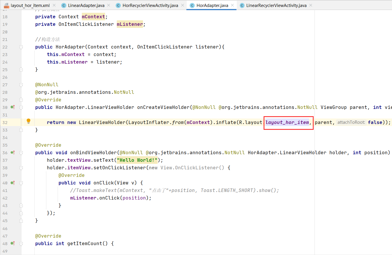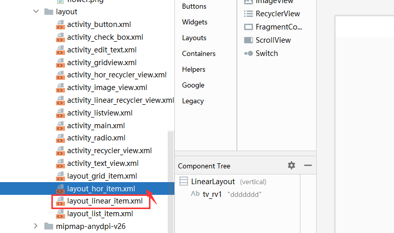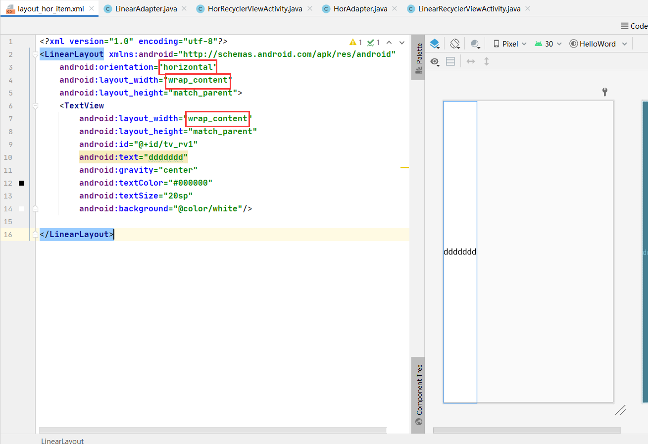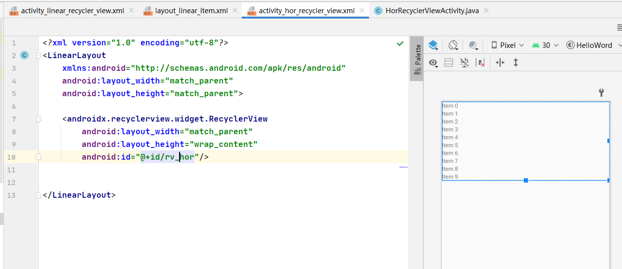 在上次的基础上,在main视图的子RecyclerView视图中添加水平视图控件