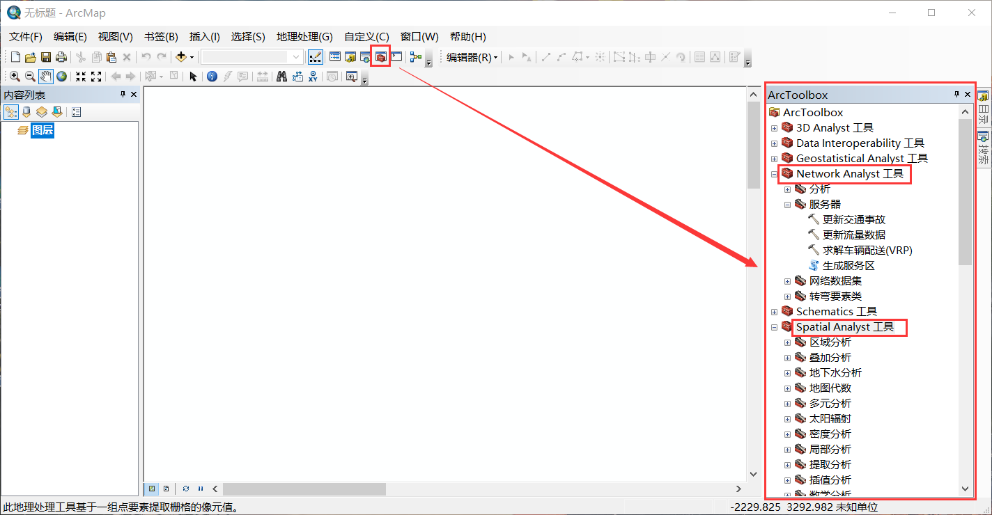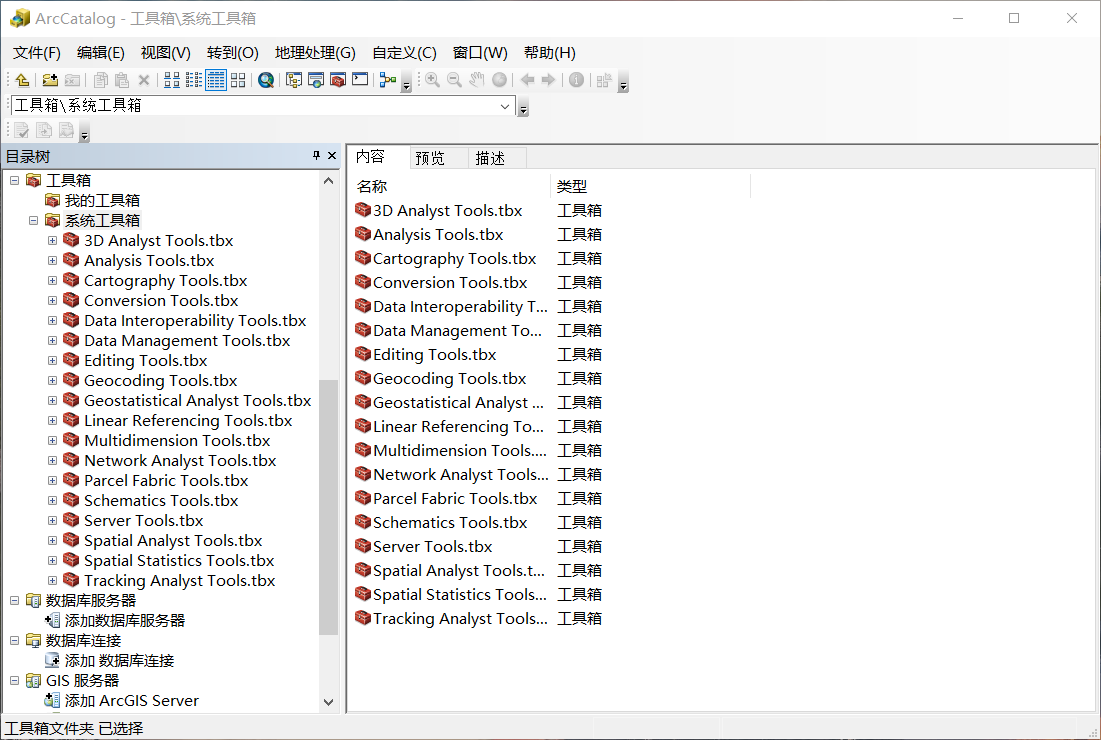 工具箱:存放模型的,常用,ARCMap的工具箱包含几乎所有建模所需的工具