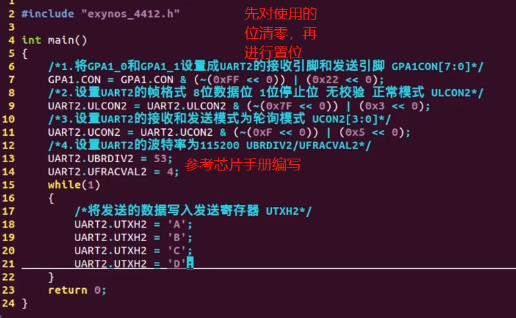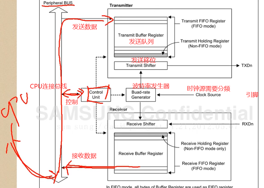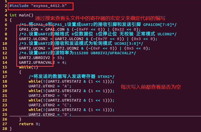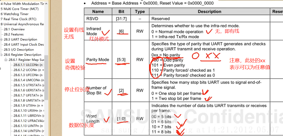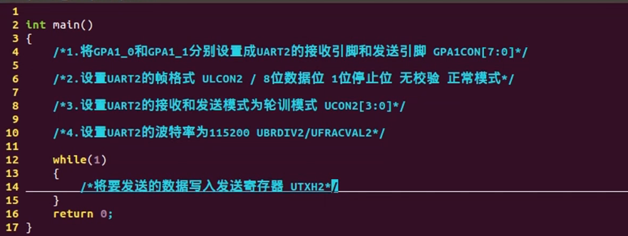 首先要设置值GPIOCON控制寄存器,设置为UART...然后下图