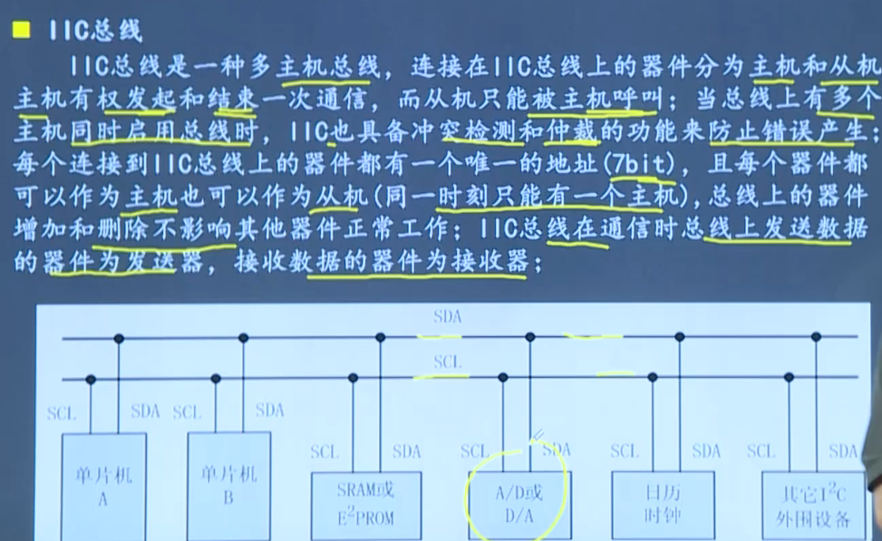| IIC | 串行 | 半双工 | 同步 | 一次发若干个8位 | 先高位后低位 | 有应答 | 多主多从 | 有起始停止位 | 最慢 |
