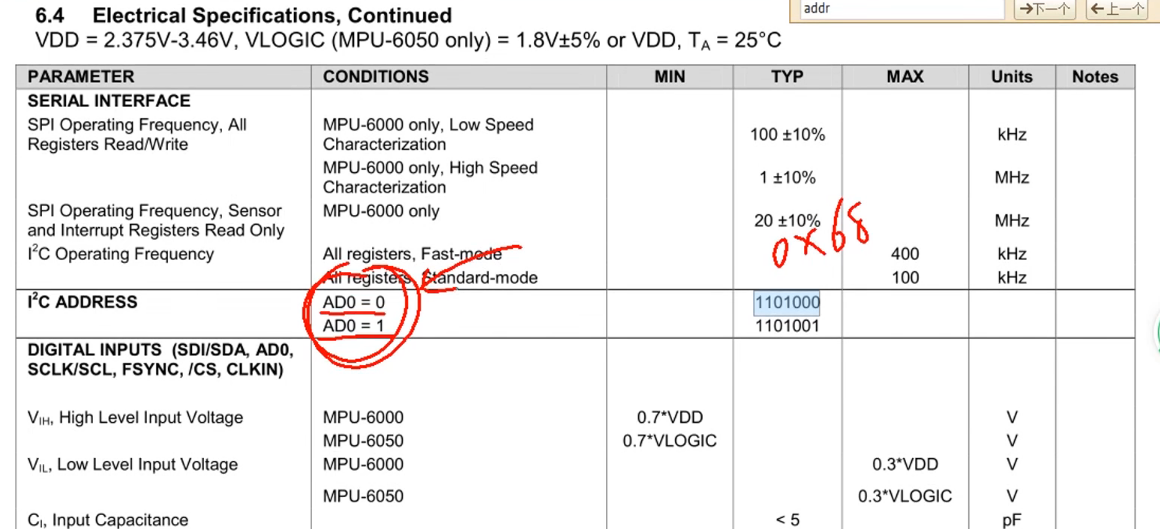 IIC接口的芯片,一般都不止一个地址可以设置,比如6050就有两种,目的是防止地址冲突,IIC线上的每个芯片都要有各自不同的地址