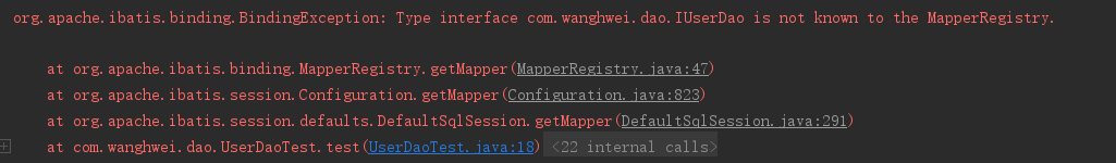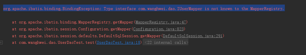 org.apache.ibatis.binding.BindingException: Type interface com.wanghwei.dao.IUserMapper is not known to the MapperRegistry.
