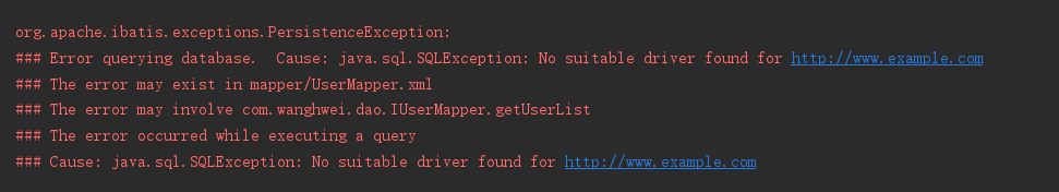 Cause: java.sql.SQLException: No suitable driver found for http://www.example.com (maven搭建mybatis出错)