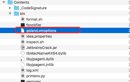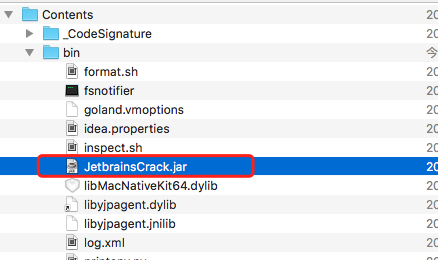 将JetbrainsCrack.jar拷贝到自己的GoLand安装目录中, 右键GoLand显示包内容