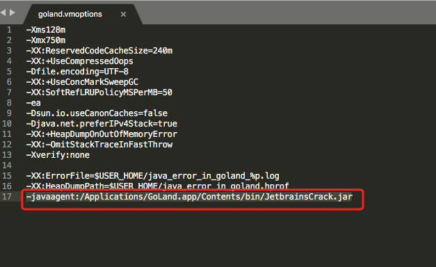 -javaagent:/Applications/GoLand.app/Contents/bin/JetbrainsCrack.jar