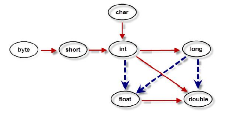 自动类型转换:低类型到高类型直接转换(隐式类型转换)安全的