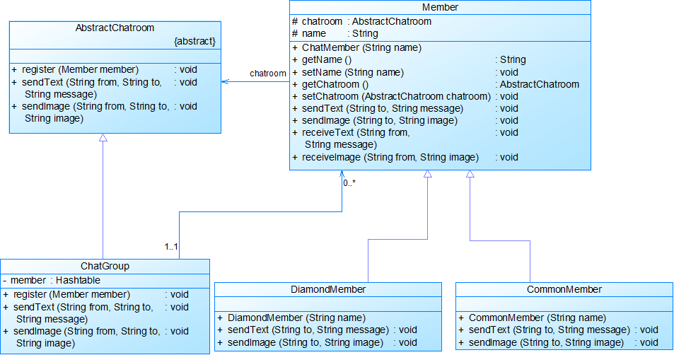 某论坛系统欲增加一个虚拟聊天室,允许论坛会员通过该聊天室进行信息交流,普通会员可以给其他会员发送文本信息,