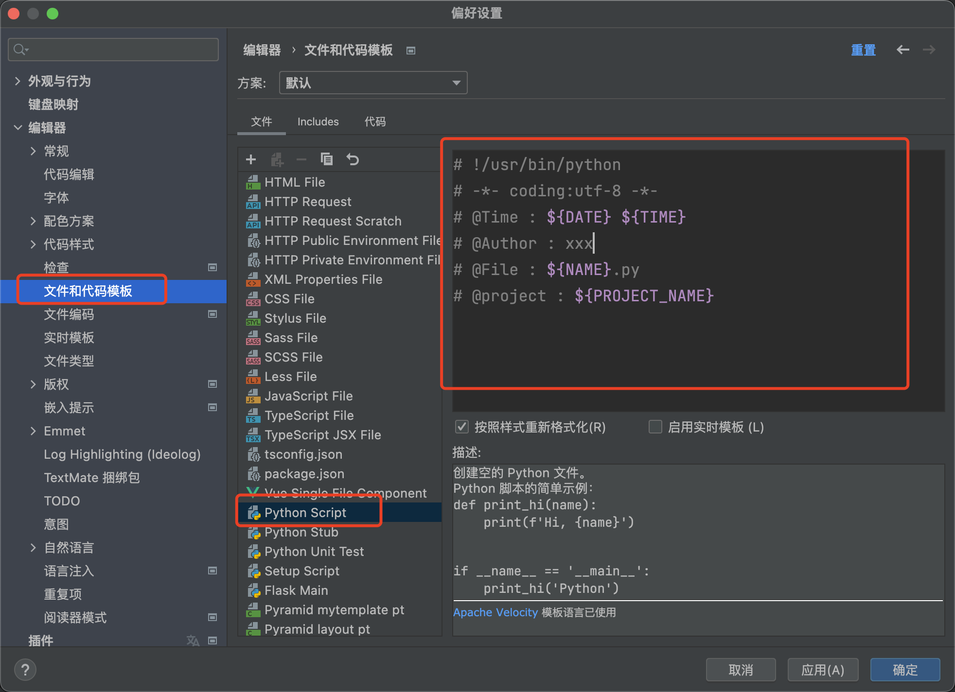 再次创建Python文件,打开文件,会自动显示好模板里的内容