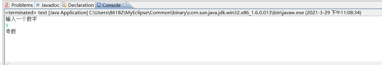 import java.util.Scanner; public class text { /** * @param args */ public static void main(String[] args) { // TODO Auto-generated method stub Scanner input=new Scanner(System.in); System.out.println("输入一个数字"); int x=input.nextInt(); if(x%2==0){ System.out.println("偶数"); }else { System.out.println("奇数"); } } }