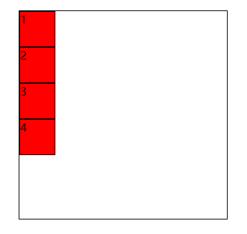 <style> .box{width: 300px;height: 300px;margin: 100px auto;border: 1px solid black; display: flex;flex-direction:column;} .box div{width: 50px;height: 50px; background: red;border: 1px solid black;} </style>