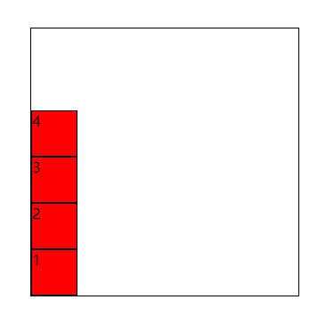 <style> .box{width: 300px;height: 300px;margin: 100px auto;border: 1px solid black; display: flex;flex-direction:column-reverse;} .box div{width: 50px;height: 50px; background: red;border: 1px solid black;} </style>