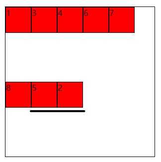 <style> .box{width: 300px;height: 300px;margin: 100px auto;border: 1px solid black; display: flex; flex-wrap: wrap;} .box div{ width:50px;height:50px;background: red;border: 1px solid black;} .box div:nth-of-type(2){order: 2;} .box div:nth-of-type(5){order: 1;} </style>