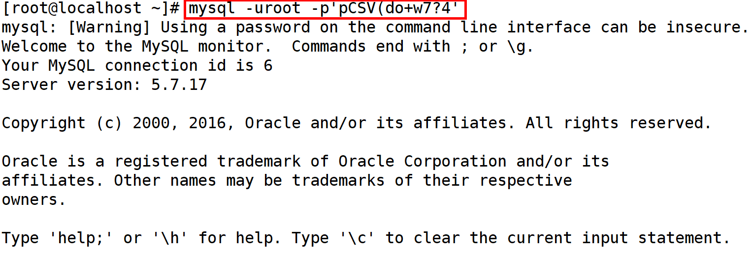 ] # msyql -hlocalhost -uroot -p'生成的随机密码'