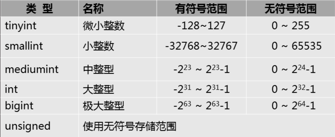 1 mysql> create table t4(name char(10),level tinyint); 2 Query OK, 0 rows affected (0.01 sec) 3 4 mysql> desc t4; 5 +-------+------------+------+-----+---------+-------+ 6 | Field | Type | Null | Key | Default | Extra | 7 +-------+------------+------+-----+---------+-------+ 8 | name | char(10) | YES | | NULL | | 9 | level | tinyint(4) | YES | | NULL | | 10 +-------+------------+------+-----+---------+-------+ 11 2 rows in set (0.00 sec) 12 mysql> insert into t4 values("aaa",-1); 13 Query OK, 1 row affected (0.00 sec) 14 15 mysql> select * from t4; 16 +------+-------+ 17 | name | level | 18 +------+-------+ 19 | aaa | -1 | 20 +------+-------+ 21 1 row in set (0.00 sec) 22 23 24 mysql> create table t5 (name char(10),level tinyint unsigned); 25 Query OK, 0 rows affected (0.01 sec) 26 27 mysql> insert into t5 values("bbb",-1); 28 ERROR 1264 (22003): Out of range value for column 'level' at row 1 29 30 mysql> insert into t5 values("bbb",1); 31 Query OK, 1 row affected (0.01 sec) 32 33 ysql> insert into t5 values("bbb",255); 34 Query OK, 1 row affected (0.00 sec) 35 36 mysql> insert into t5 values("bbb",256); 37 ERROR 1264 (22003): Out of range value for column 'level' at row 1 38 39 mysql> select * from t5; 40 +------+-------+ 41 | name | level | 42 +------+-------+ 43 | bbb | 1 | 44 | bbb | 0 | 45 | bbb | 255 | 46 +------+-------+ 47 3 rows in set (0.00 sec)