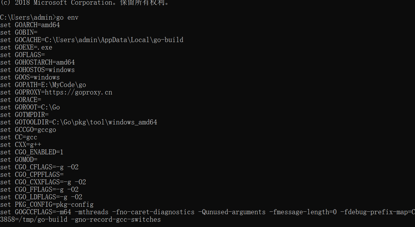 配置完成之后查看go env 看下go的环境配置