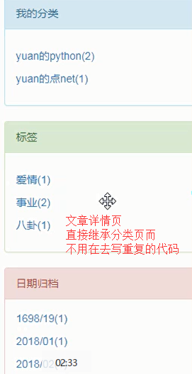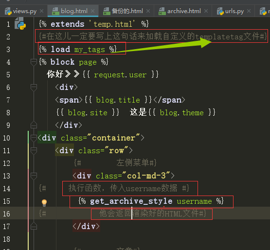 {% extends 'temp.html' %} {#在这儿一定要写上这句话来加载自定义的templatetag文件#} {% load my_tags %} {% block page %} 你好》》{{ request.user }} <div> <span>{{ blog.title }}</span> {{ blog.site }} 这是{{ blog.theme }} </div> <div class="container"> <div class="row"> {# 左侧菜单#} <div class="col-md-3"> {# 执行函数,传入username数据 #} {% get_archive_style username %} {# 他会返回渲染好的HTML文件#} </div> {# 文章#} <div class="col-md-6"> {% for aticle in article_list %} <div class="media"> <div class="media-body " style="font-size: 12px" > <div class="media"> <h4 class="media-heading"><a href="">{{ aticle.title }}</a></h4> <div class="media-body " style="font-size: 12px" > {{ aticle.desc|truncatechars:50 }} </div> <div class="pull-right"> <span><a href="">{{ aticle.user.username }}