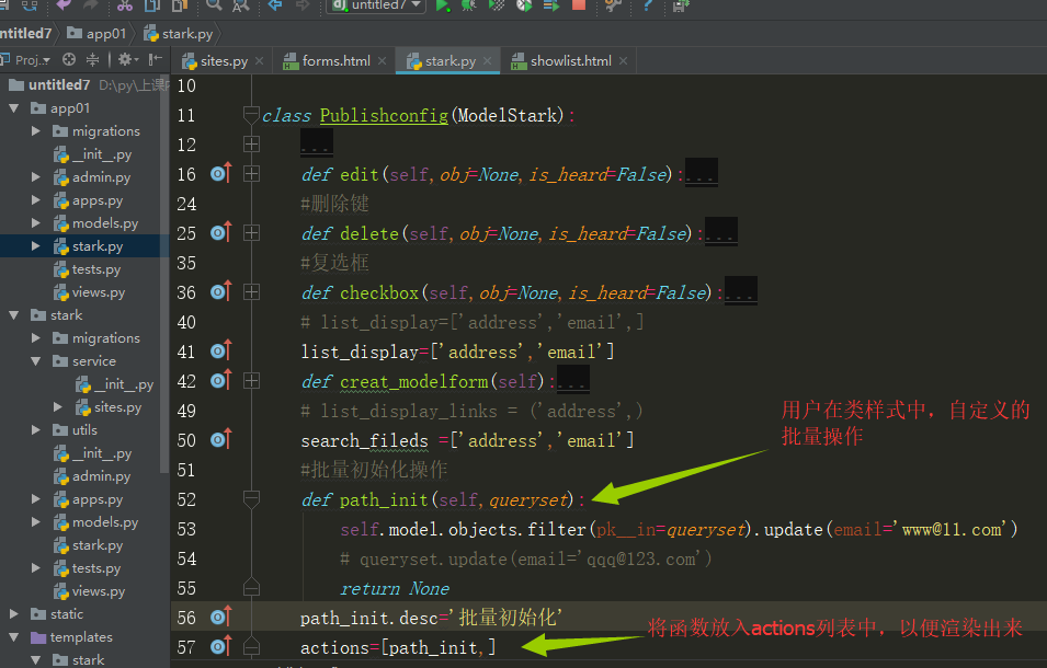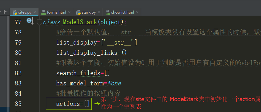 第一步:给ModelStark类中初始化一个cations属性 为一个空列表,用于保存action方法