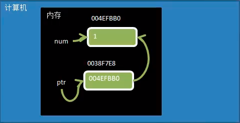 #include<stdio.h> void main(){ int num=1233;//值 int*ptr=#//ptr是num的指针 *ptr=33; printf("%p\n",&num);//输出指针使用%p printf("%p\n",ptr); printf("%d\n",*ptr);//通过指针输出值使用*ptr }