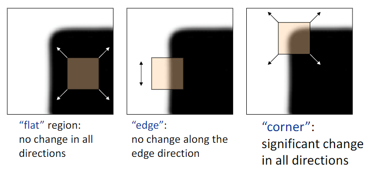 - 角点区域:无论向哪个方向移动,窗口内的像素都会发生明显变化