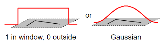 其中权值项w(x,y)可以是全1矩阵,表示所有点一视同仁,如果用高斯矩阵,表示越靠近中心的点越重要。