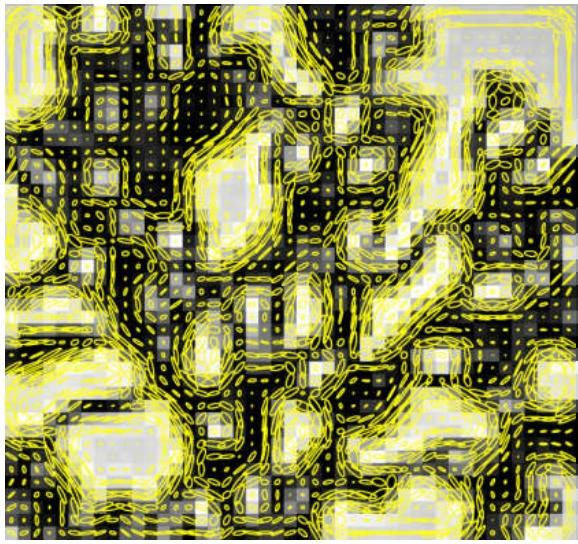 这个方向,是由R矩阵决定的,这是一个正交的旋转矩阵。也就是这个椭圆的旋转矩阵,也就描述的是E(u,v)在哪个方向上变化最快,哪个方向上变化最慢。