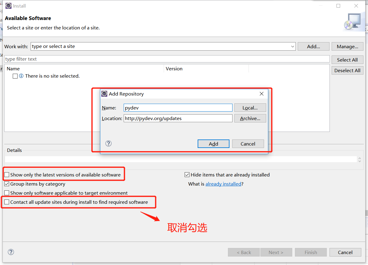 2、安装完毕Ec后打开,配置pydev:help-install new software