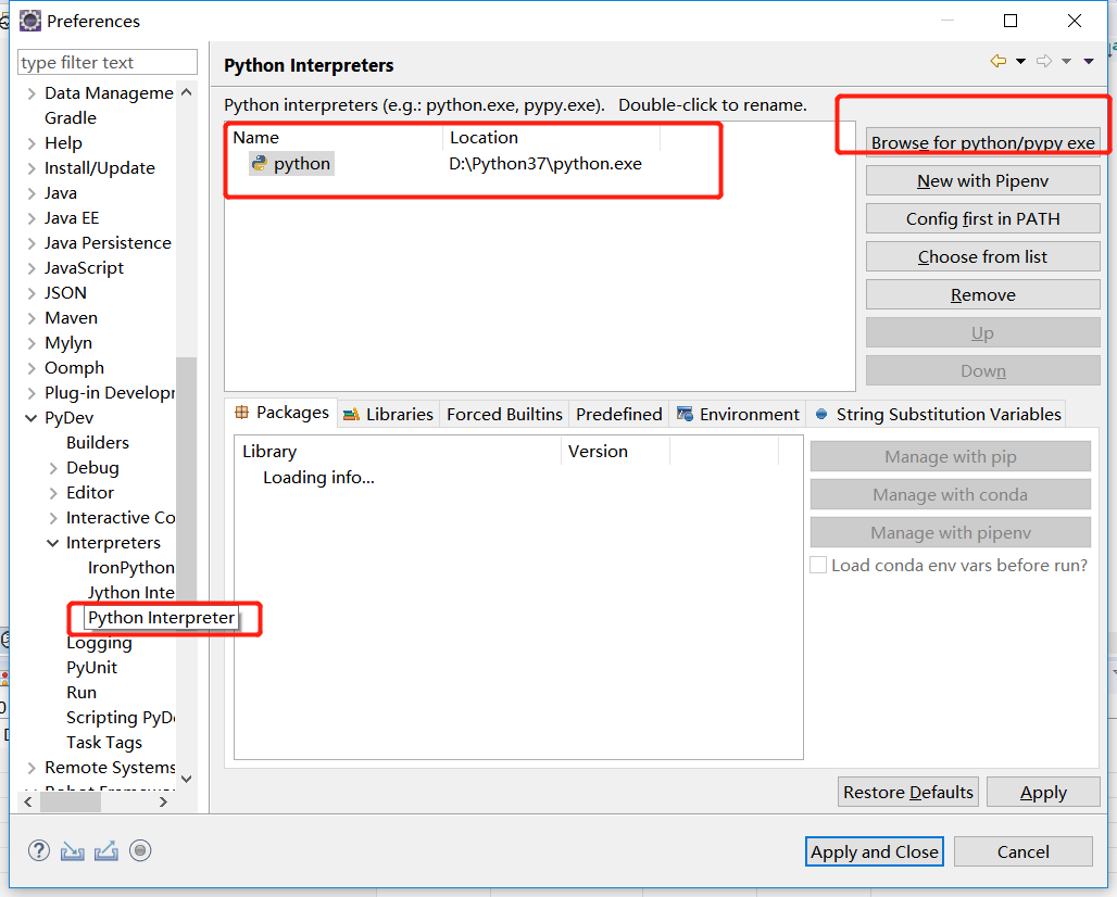 3、配置python编辑器:windows-preferences-pydev-interpreters-python Interpreters