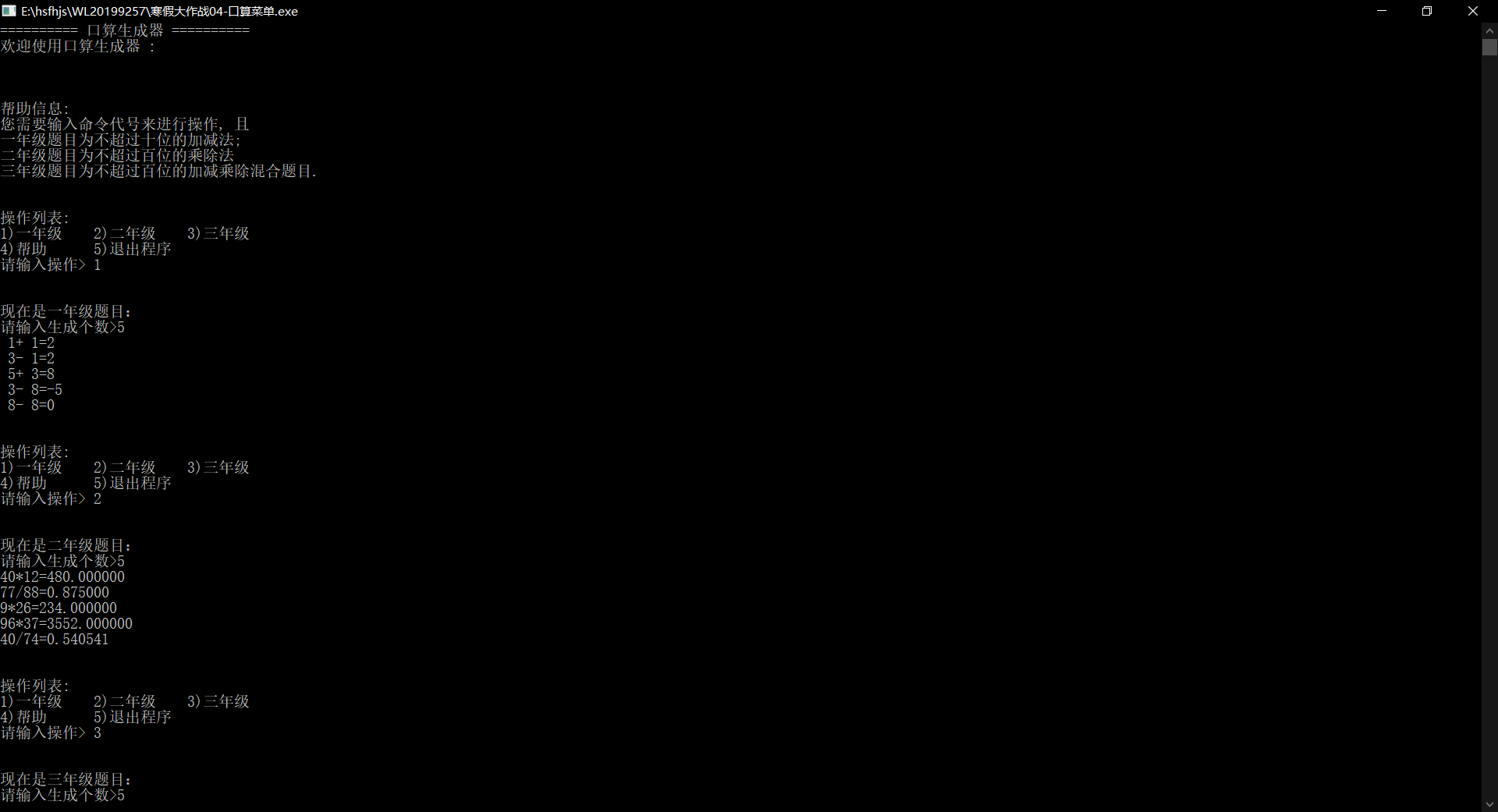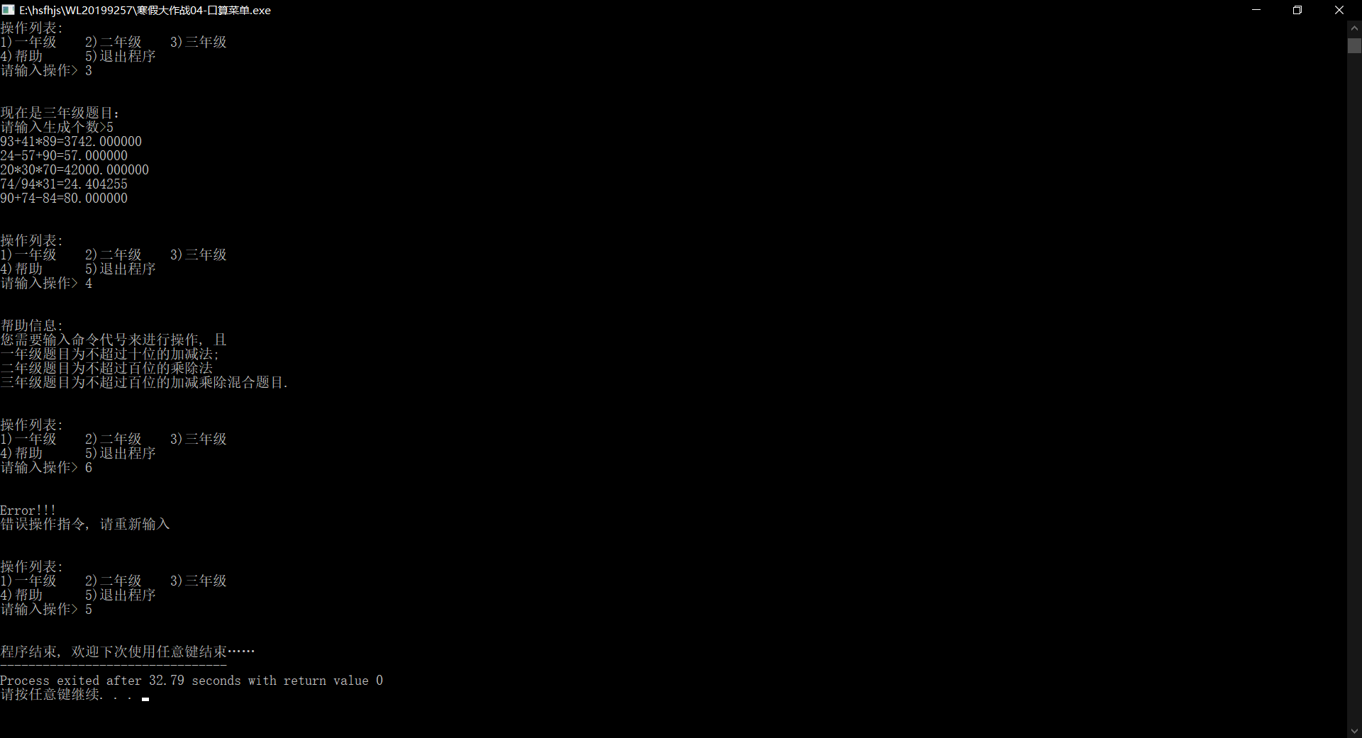 | 这个作业的目标 | 使用上次作业的菜单框架,并在其基础上增加各年级题目的答案函数 |