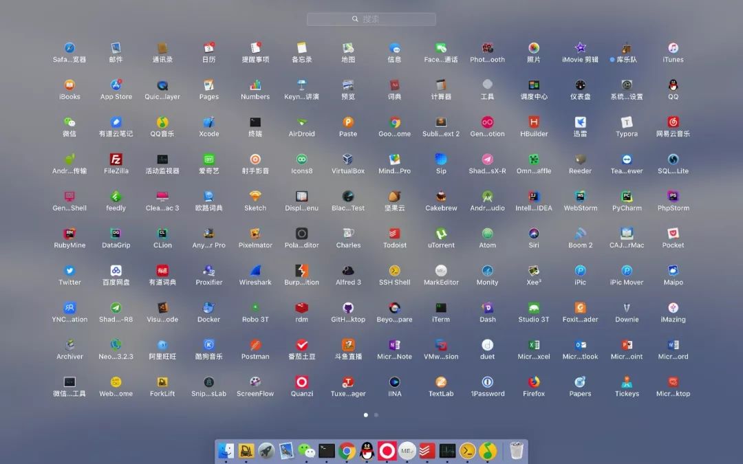 最近有一个朋友刚入手了 Mac,准备专门搞开发用,让我给他推荐几款软件,然后我就把我的 Launchpad 截图发给了他,他看到这密密麻麻的软件完全不知所措,如下图。