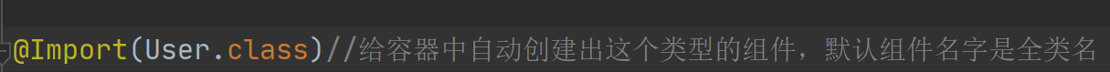 给容器中导入一个组件。写在容器的组件类上,是一个class数组可以导入很多组件(调用导入组件的无参构造)