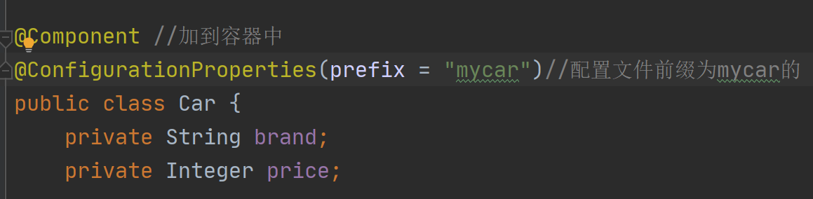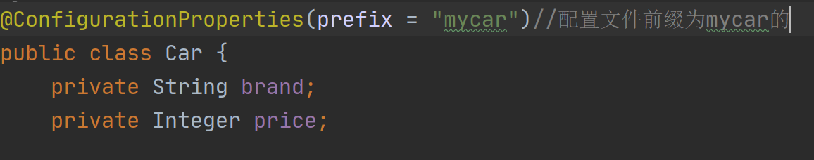 @ConfigurationProperties(prefix="属性在配置文件中的前缀")+@Conmpent(加入容器当中)