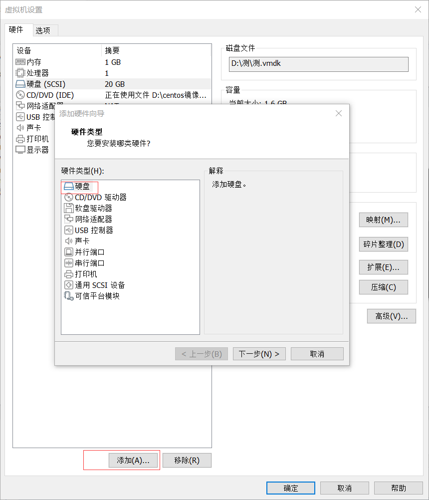 右键我们创建好的虚拟机 —设置—添加—选择硬盘
