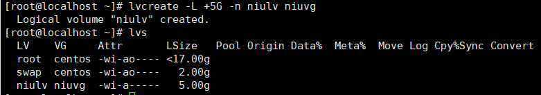 lvcreate -L +5G -n 自定义逻辑卷名称 卷组名称
