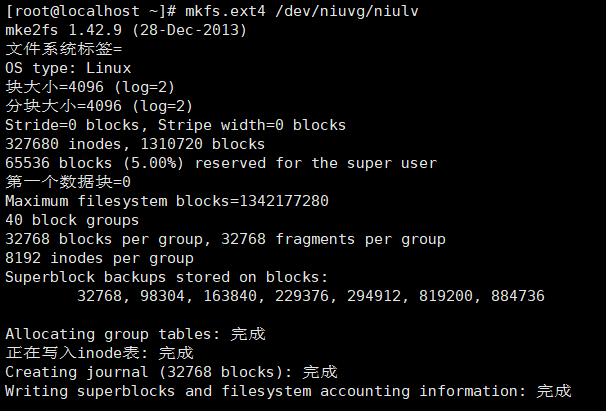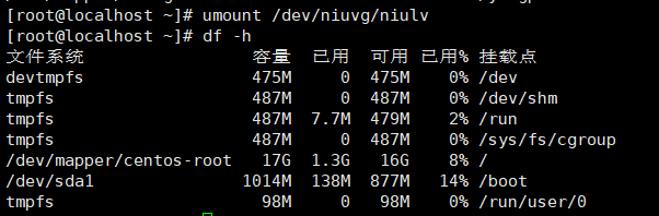 e2fsck -f /dev/niuvg/niulv 检查磁盘是否有错误