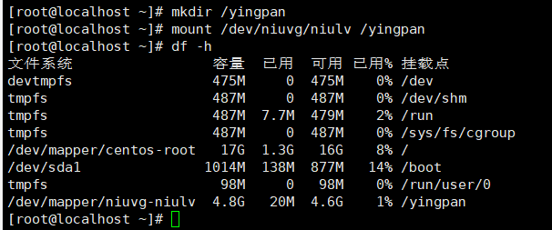 df -h查看信息 如果还是4.8G 用resize2fs /dev/niuvg/niulv 刷新一下